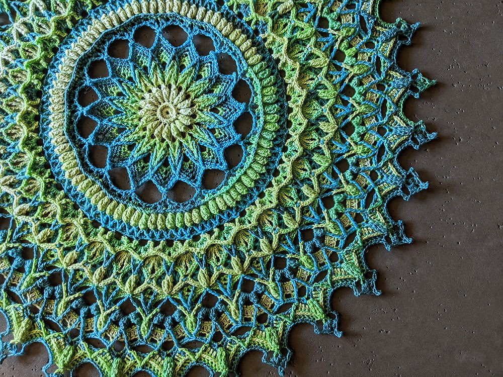 I think this pattern worked well with long-change variegated thread, but I've also seen some versions in solid colors that highlight the texture with beautiful crispness.